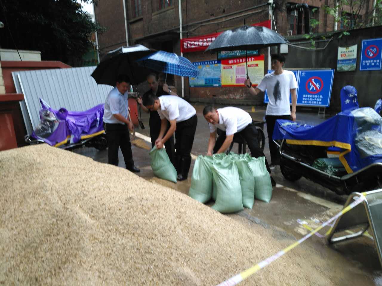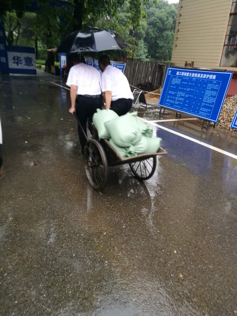 随着近期雨势越来越大,作为一个始终坚持“安全第一、预防为主、综合治理”的文物保护管理单位,业主方非常重视各文物保护单位的文物及人员安全,公司项目组员工更是加班加点安排人员,配合业主需求24小时巡查,防范未然。6月30日,中共湘区委员会旧址门前沟渠临近警戒线,项目组员工立即冒雨运送沙袋,填堵。7月1日的暴雨导致长沙市博物馆内园区多处树木倾倒,7月2日项目主管余爱民立即设置警示标志,配合街道社区园林进行处理。全体项目员工用实际行动践行了公司服务理念:用心服务客户。